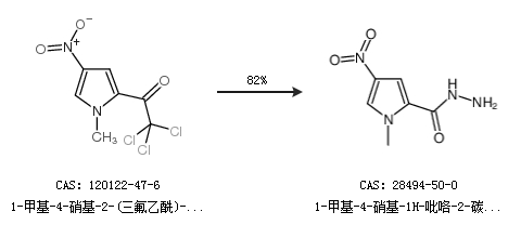 1.通过1-甲基-4-硝基-2-(三氟乙酰)-1H-吡咯合成1-甲基-4-硝基-1H-吡咯-2-碳酰肼,收率约82%;