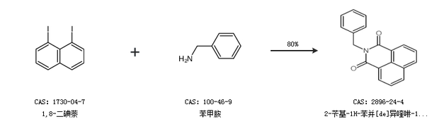 2.通过1,8-二碘萘和苯甲胺合成2-苄基-1H-苯并[de]异喹啉-1,3(2H)-二酮,收率约80%;