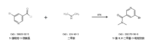 1.通过5-溴吡啶-3-羰酰氯和二甲胺合成5-溴-N,N-二甲基-3-吡啶羧胺,收率约87%;