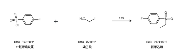 2.通过4-氟苯磺酰氯和碘乙烷合成氟苯乙砜,收率约16%;