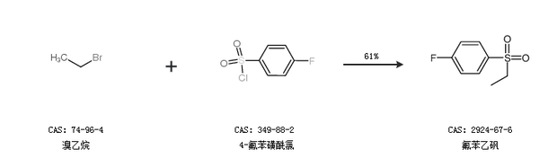 1.通过溴乙烷和4-氟苯磺酰氯合成氟苯乙砜,收率约61%;