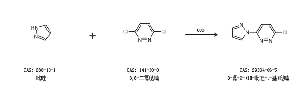 1.通过吡唑和3,6-二氯哒嗪合成3-氯-6-(1H-吡唑-1-基)哒嗪,收率约83%;