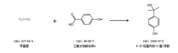 2.通过甲基锂和乙酰水杨酸杂质A合成4-(2-羟基丙烷-2-基)苯酚