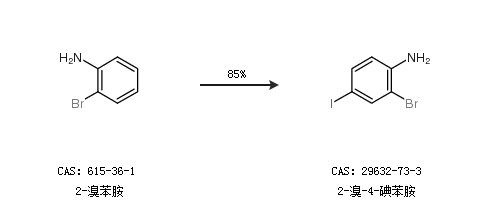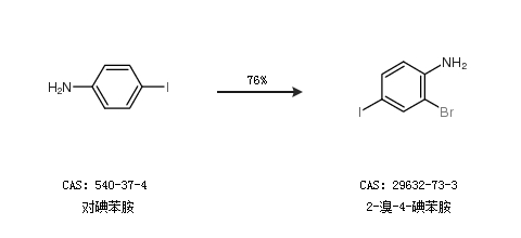 1.通过对碘苯胺合成2-溴-4-碘苯胺,收率约76%;