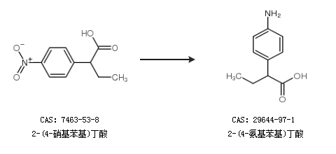 1.通过2-(4-硝基苯基)丁酸合成2-(4-氨基苯基)丁酸