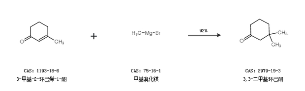 2.通过3-甲基-2-环己烯-1-酮和甲基溴化镁合成3,3-二甲基环己酮,收率约92%;