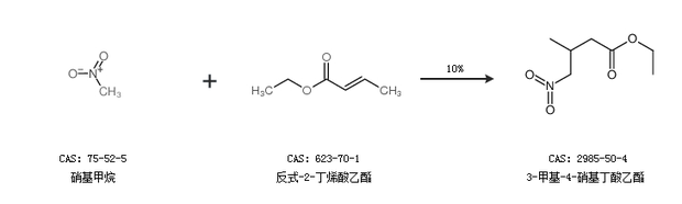 1.通过硝基甲烷和反式-2-丁烯酸乙酯合成3-甲基-4-硝基丁酸乙酯,收率约10%;