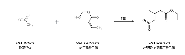 2.通过硝基甲烷和2-丁烯酸乙酯合成3-甲基-4-硝基丁酸乙酯,收率约76%;