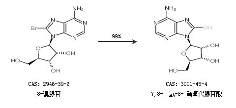 1.通过8-溴腺苷合成7,8-二氢-8- 硫氧代腺苷酸,收率约99%;