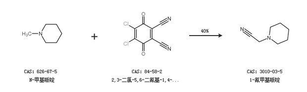 1.通过N-甲基哌啶和2,3-二氯-5,6-二氰基-1,4-苯醌合成1-氰甲基哌啶,收率约40%;