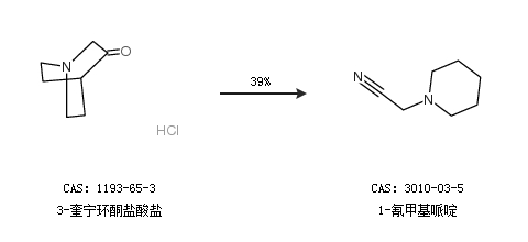 2.通过3-奎宁环酮盐酸盐合成1-氰甲基哌啶,收率约39%;