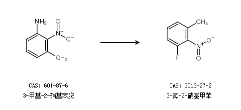 1.通过3-甲基-2-硝基苯胺合成3-氟-2-硝基甲苯