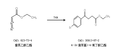 2.通过重氮乙酸乙酯合成4-(4-溴苯基)-4-氧丁酸乙酯,收率约74%;