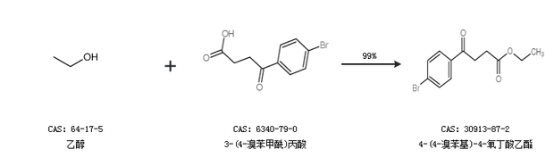 1.通过乙醇和3-(4-溴苯甲酰)丙酸合成4-(4-溴苯基)-4-氧丁酸乙酯,收率约99%;