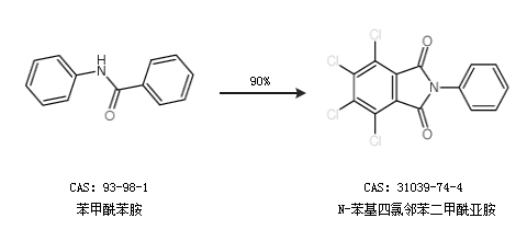 2.通过苯甲酰苯胺合成N-苯基四氯邻苯二甲酰亚胺,收率约90%;