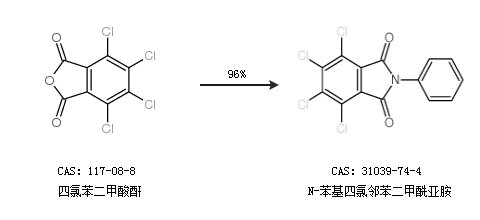 1.通过四氯苯二甲酸酐合成N-苯基四氯邻苯二甲酰亚胺,收率约96%;