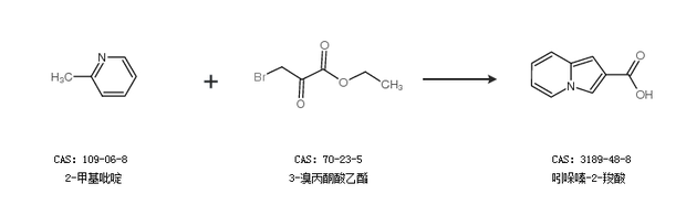 2.通过2-甲基吡啶和3-溴丙酮酸乙酯合成吲哚嗪-2-羧酸