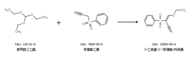1.通过原甲酸三乙酯和苯磺酰乙腈合成3-乙氧基-2-(苯磺酰)丙烯腈