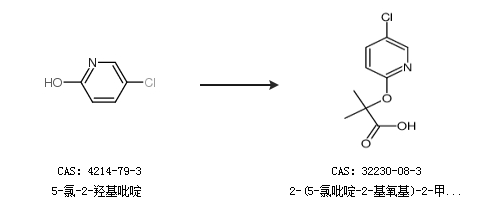 1.通过5-氯-2-羟基吡啶合成2-(5-氯吡啶-2-基氧基)-2-甲基丙酸
