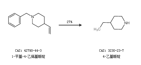 2.通过1-苄基-4-乙烯基哌啶合成4-乙基哌啶,收率约27%;