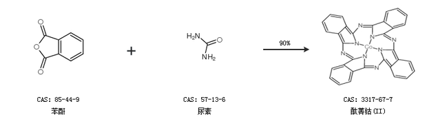 2.通过苯酐和尿素合成酞菁钴(II),收率约90%;