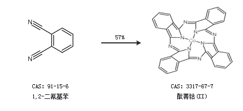 1.通过1,2-二氰基苯合成酞菁钴(II),收率约57%;