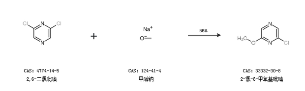 2.通过2,6-二氯吡嗪和甲醇钠合成2-氯-6-甲氧基吡嗪,收率约66%;