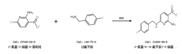 1.通过2-氨基-3-硝基-6-氯吡啶和对氟苄胺合成2-氨基-6-(4-氟苄胺)-3-硝基吡啶,收率约98%;