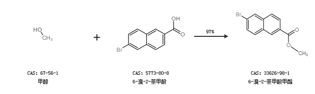 1.通过甲醇和6-溴-2-萘甲酸合成6-溴-2-萘甲酸甲酯,收率约97%;