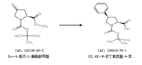 2.通过Boc-4-氧代-L-脯氨酸甲酯合成(2S,4R)-N-叔丁氧羰基-4-苯基吡咯烷-2-甲酸