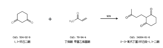 1.通过1,3-环己二酮和丁烯酮 甲基乙烯基酮合成2-(3-氧代丁基)环己烷-1,3-二酮,收率约90%;