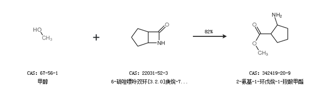 1.通过甲醇和6-硫唑嘌呤双环[3.2.0]庚烷-7-酮合成2-氨基-1-环戊烷-1-羧酸甲酯,收率约82%;