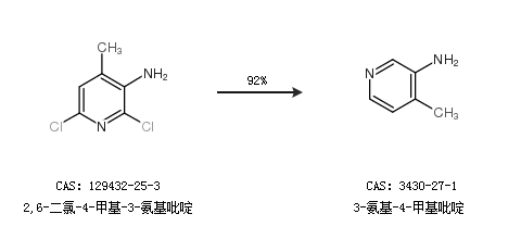 2.通过2,6-二氯-4-甲基-3-氨基吡啶合成3-氨基-4-甲基吡啶,收率约92%;