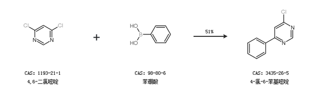 1.通过4,6-二氯嘧啶和苯硼酸合成4-氯-6-苯基嘧啶,收率约51%;