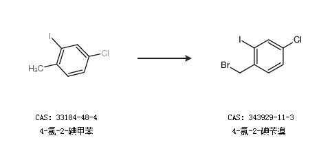 1.通过4-氯-2-碘甲苯合成4-氯-2-碘苄溴