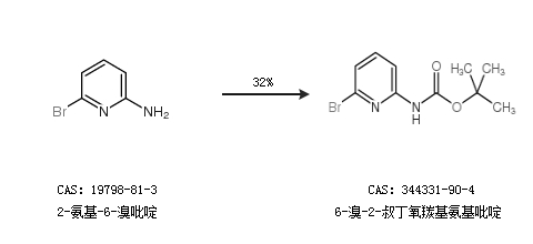 2.通过2-氨基-6-溴吡啶合成6-溴-2-叔丁氧羰基氨基吡啶,收率约32%;
