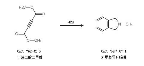 2.通过丁炔二酸二甲酯合成N-甲基异吲哚啉,收率约42%;