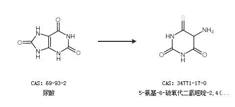 1.通过尿酸合成5-氨基-6-硫氧代二氢嘧啶-2,4(1H,3H)-二酮