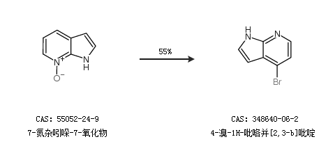 1.通过7-氮杂吲哚-7-氧化物合成4-溴-1H-吡咯并[2,3-b]吡啶,收率约55%;