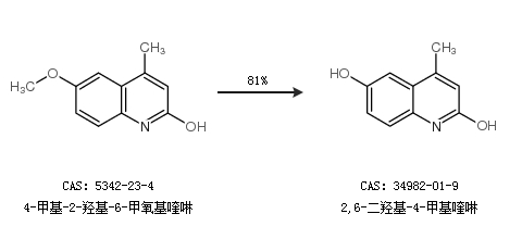 1.通过4-甲基-2-羟基-6-甲氧基喹啉合成2,6-二羟基-4-甲基喹啉,收率约81%;