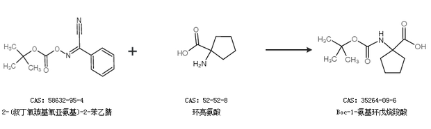 2.通过2-(叔丁氧羰基氧亚氨基)-2-苯乙腈和环亮氨酸合成Boc-1-氨基环戊烷羧酸