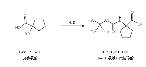 1.通过环亮氨酸合成Boc-1-氨基环戊烷羧酸,收率约91%;