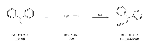 1.通过二苯甲酮和乙腈合成3,3-二苯基丙烯腈,收率约93%;