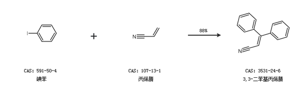 2.通过碘苯和丙烯腈合成3,3-二苯基丙烯腈,收率约88%;