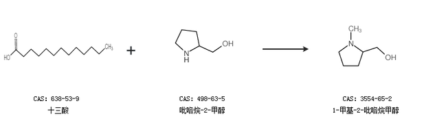 2.通过十三酸和吡咯烷-2-甲醇合成1-甲基-2-吡咯烷甲醇