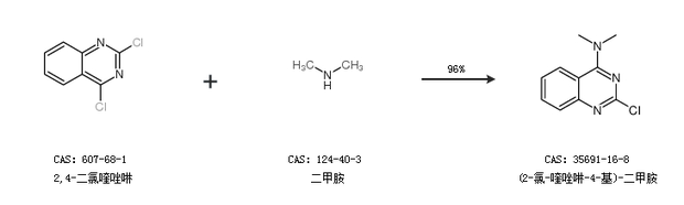 1.通过2,4-二氯喹唑啉和二甲胺合成(2-氯-喹唑啉-4-基)-二甲胺,收率约96%;