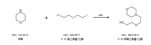 1.通过吗啉和2-(2-氯乙氧基)乙醇合成2-(2-吗啉乙氧基)乙醇,收率约64%;
