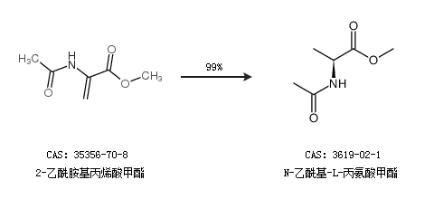 1.通过2-乙酰胺基丙烯酸甲酯合成N-乙酰基-L-丙氨酸甲酯,收率约99%;