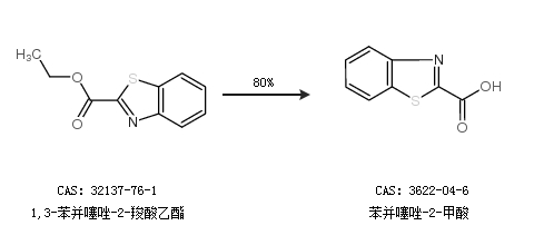 2.通过1,3-苯并噻唑-2-羧酸乙酯合成苯并噻唑-2-甲酸,收率约80%;