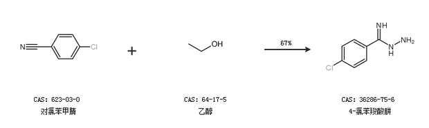 1.通过对氯苯甲腈和乙醇合成4-氯苯羧酸肼,收率约67%;